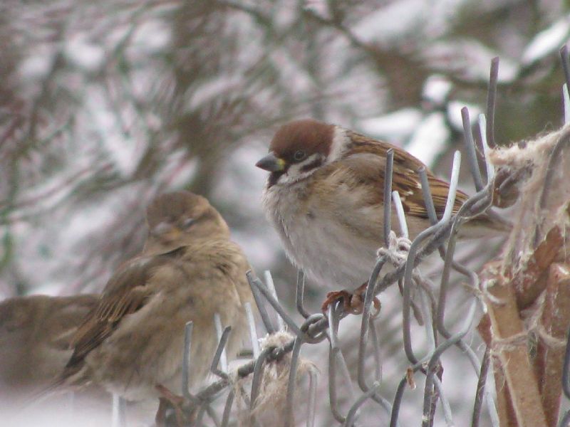 Jednak samo miejsce na gniazdo nie pomoże, jeśli ptaki nie będą miały co jeść. Dobrym pomysłem jest zostawienie na skraju ogrodu niewielkiego zakątka, gdzie nie będziemy usuwać chwastów, których nasiona stanowią przysmak mazurków. Innym ważnym elementem przestrzennym potrzebnym ptakom są krzewy, w których mogą się schować przed drapieżnikami. Zimą mazurki potrzebują naszej pomocy przede wszystkim w okresie zalegania grubej pokrywy śnieżnej – przy 20-30 cm rośliny stanowiące ich pokarm przestają być dla nich dostępne i ptaki stają się zależne od pokarmu znajdowanego przy ludzkich siedzibach. Dobrze jest przy krzewach wysypać dla nich nasiona owsa, prosa albo pszenicy. Bardzo ważne jest również nie usuwanie gniazd mazurków z budek przed zimą, aby zapewnić im możliwość przenocowania w ciepłym miejscu, gdzie zaoszczędzą tak potrzebną energię (stare gniazda możemy usuwać w drugiej połowie lutego). Mniejsi bracia wróbli będą nam za to wdzięczni.