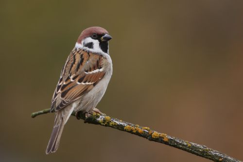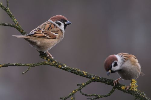 Mazurek (po prawej) w towarzystwie samic wróbla (po lewej). Fot . Elżbieta Kapusta / Archiwum OTOP