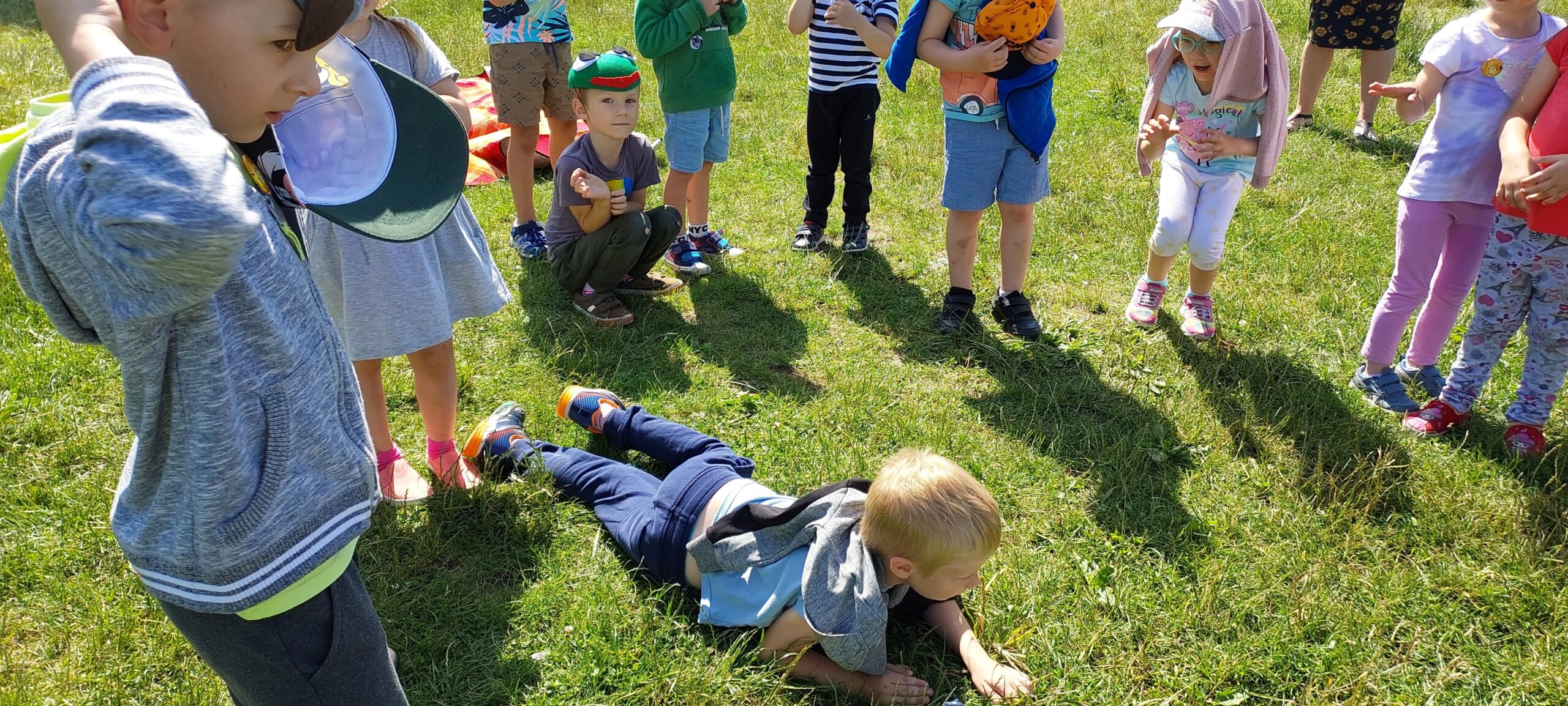 To była naprawdę owocna wyprawa. Zakończyliśmy ją wspólną zabawą w „Jakim zwierzęciem jesteś? Jak się poruszasz? Jak zdobywasz pokarm?” – każdy wybrał jedno zwierzę, które starał się naśladować. Oprócz motyli, biedronek i pszczół w naszym towarzystwie znalazły się: żaba, jeż, dzięcioł, a nawet puma.