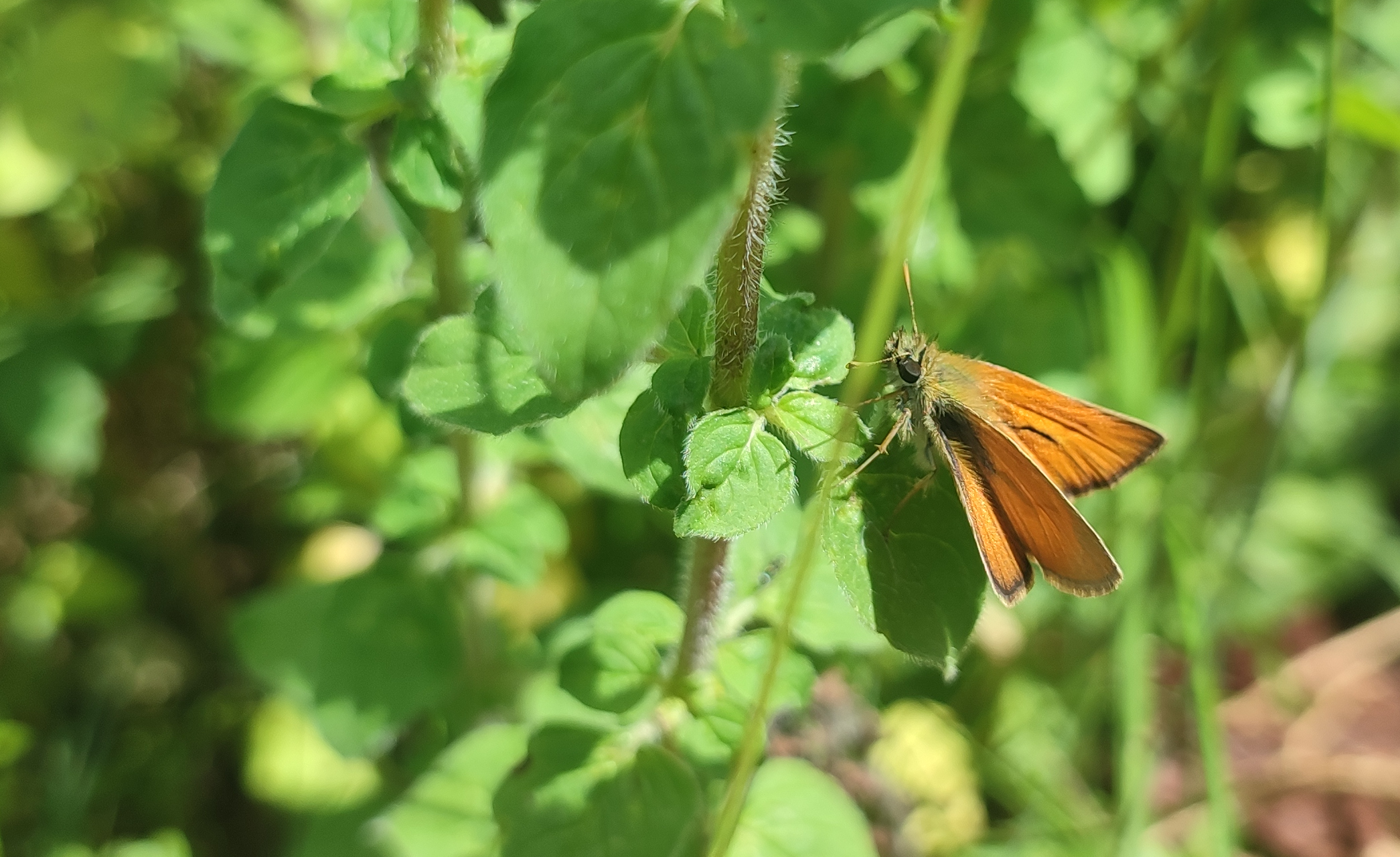 Zafascynowane przyrodą maluchy nie ustawały w wyszukiwaniu zwierząt. Na kwiatach, które wyrosły na trawniku (z korzyścią dla owadów, nie był on jeszcze w tym roku koszony) udało się nam zaobserwować liczne pszczoły miodne, trzmiele i znacznie mniejsze dzikie przedstawicielki rodziny pszczołowatych. Nie zabrakło również bzygów – muchówek udających osy lub pszczoły i, podobnie jak one, trudniące się zapylaniem. Zdecydowanie najwięcej zachwytu wywołały kolorowe motyle. Jednego z nich – modraszka ikara – udało się nam złapać w sieć entomologiczną i dokładnie przyjrzeć jego mieniącym się w słońcu niebieskim skrzydłom. Przy zbiorniku wodnym obserwowaliśmy pszczoły miodne, które przylatują nad wodę, by się napić. Mogliśmy dość dobrze przyjrzeć się ich długim języczkom, które zakończone są łyżeczkami – dzięki nim pszczoły mogą zlizywać wodę, ale przede wszystkim nektar kwiatowy. Na roślinności porastającej brzegi zbiornika przysiadały od czasu do czasu ważki – łątki i ważki płaskobrzuche. W niewielkim zbiorniczku wodnym złowiliśmy czerpakiem kilka drapieżnych pluskwiaków wodnych. Przenieśliśmy je do pojemnika z wodą i przez chwilę podziwialiśmy, jak sprawnie się w wodzie.