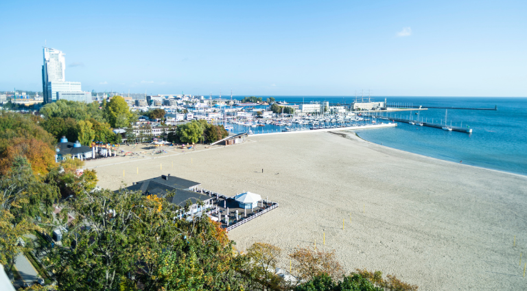 Widok z Dużego Żagla na plażę i centrum miasta, fot. archiwum UM Gdynia