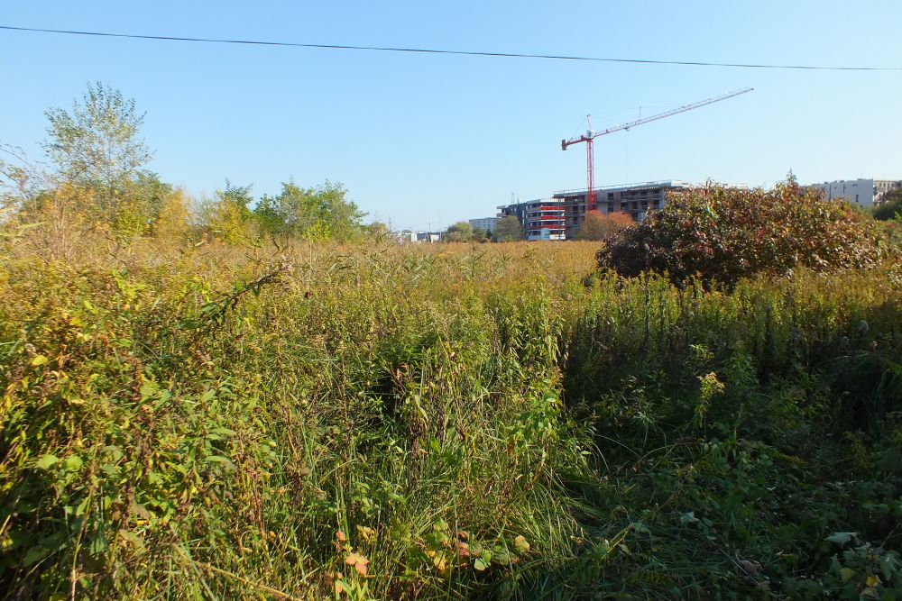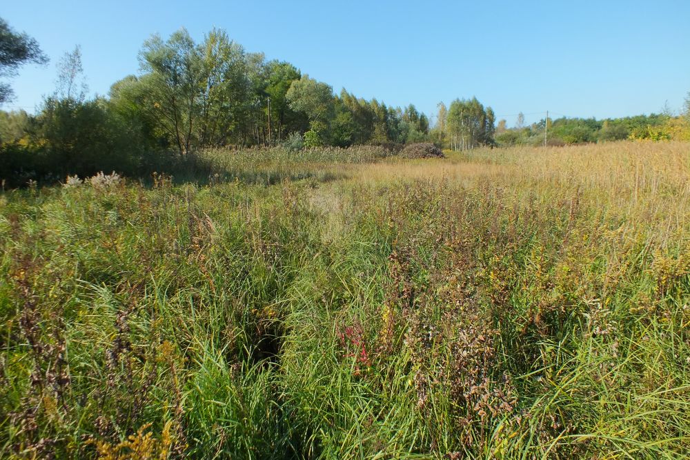 Widok poglądowy działki – widać silne zarośnięcie dawnej łąki przez trzcinę i nawłoć. Fot. Rafał Bobrek