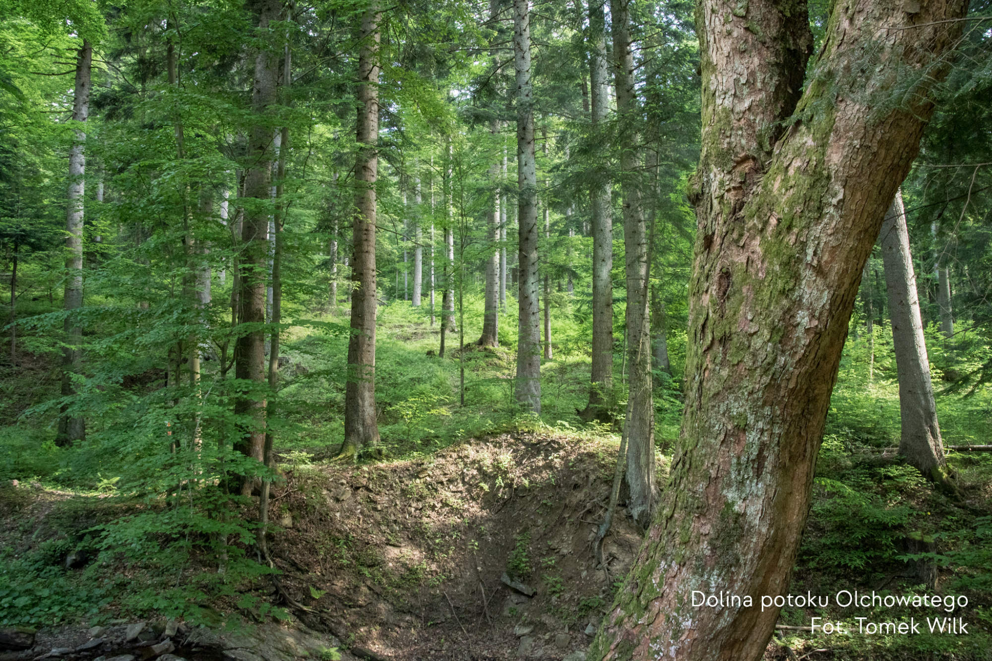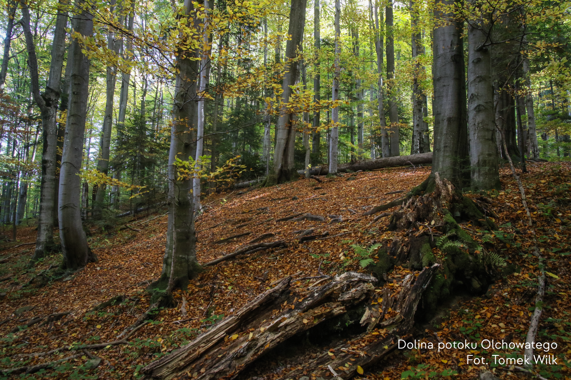 Z Przełomu Wisłoka wędrujemy ku granicy ze Słowacją w okolice Komańczy, do nieistniejącego rezerwatu Zagłębek, który chronić powinien wiekowe, ponad stuletnie lasy jodłowe i bukowe, stanowiące ważne siedlisko dla chrząszczy saproksylicznych, czyli związanych z martwym drewnem, m.in. zagłebka bruzdkowanego. To ostatni rezerwat na naszym szlaku leżący jeszcze w Beskidzie Niskim. Chcąc odwiedzić kolejny – Dolinę Potoku Olchowatego – należy wkroczyć już w pasmo Bieszczadów. Na samym jego skraju, na zboczach Chryszczatej, chcielibyśmy by powstał rezerwat Dolina Potoku Olchowatego. Jego obszar obejmowałby lesiste zbocza poprzecinane jarami, których dnem płyną krystalicznie czyste potoki, m.in. Potok Olchowaty. Na południowy wschód od Olchowatego leży nieistniejący rezerwat Zgniotek. Obejmowałby on lasy góry Krąglica, których ostępy to kolejna ostoja rzadkich, puszczańskich gatunków chrząszczy, m.in. pięknego zgniotka cynobrowego.